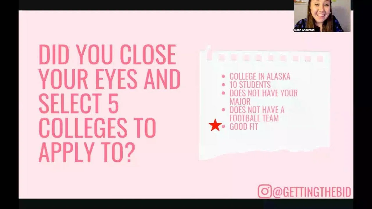 Before you know it, time is up. You asked Brooke one of the scripted questions. Throughout your conversation, you got off-topic and talked about the football games, your goals for college, the things you hope to accomplish, and the memories you hope to make.